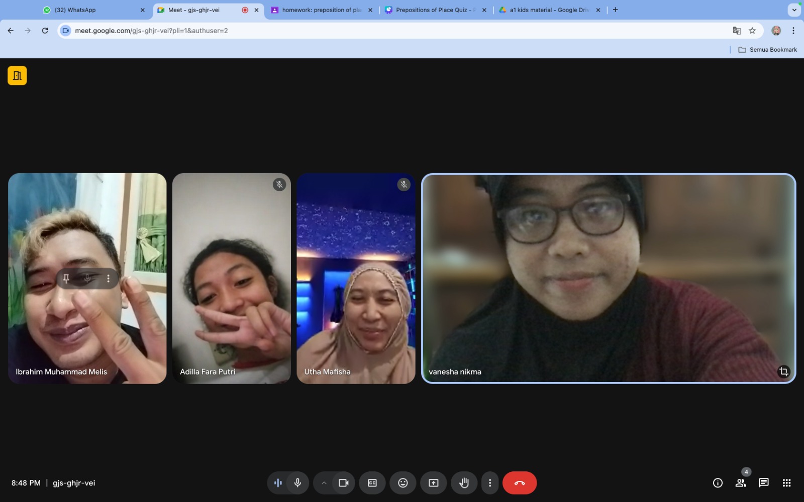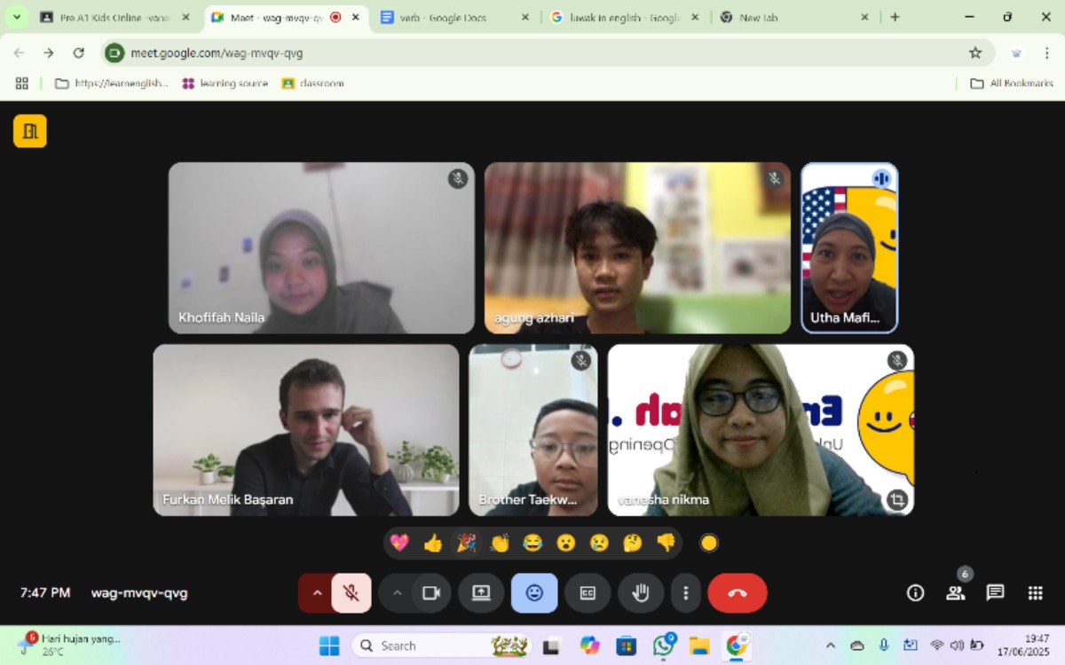 “Dengan English ah, bahasa Inggris saya telah meningkat dari membaca ke mendengarkan, ini sangat membantu saya dalam belajar bahasa Inggris, terima kasih Mr. Nayyir dan Miss Utha.”